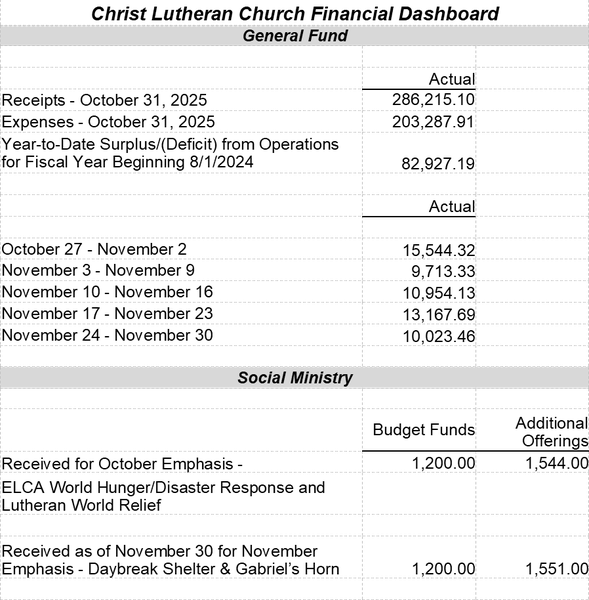 - Help achieve our goal of $2500 in November (over and above giving - combined with CLC’s budgeted amount of $1200). By achieving our goal CLC will help Bethel Lutheran thrive with outreach activities to organizations such as