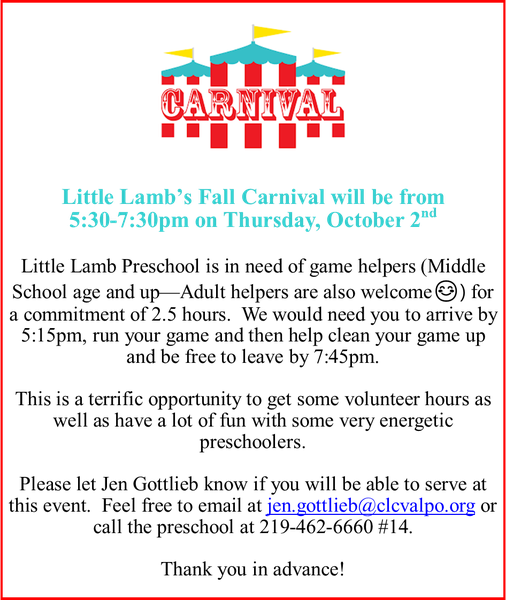 this class)]. Please contact Jen with any questions or interest. 219-462-6660 #14 or LLP@CLCValpo.org You may also look on our website for more class information. clcvalpo.org. Classes begin soon!