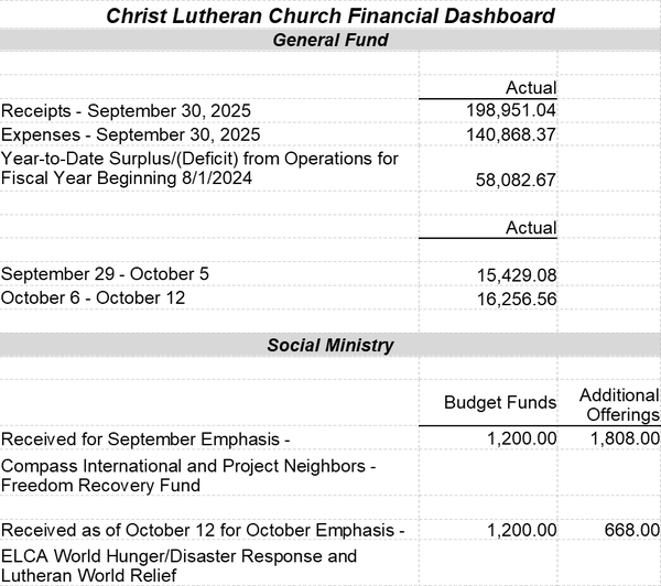 CLC Social Ministry and Mission   Social Ministry Emphasis for October.  The focus this month is to provide volunteer time and monetary support for Lutheran World Relief  www.lwr.org and ELCA World Hunger/Disaster