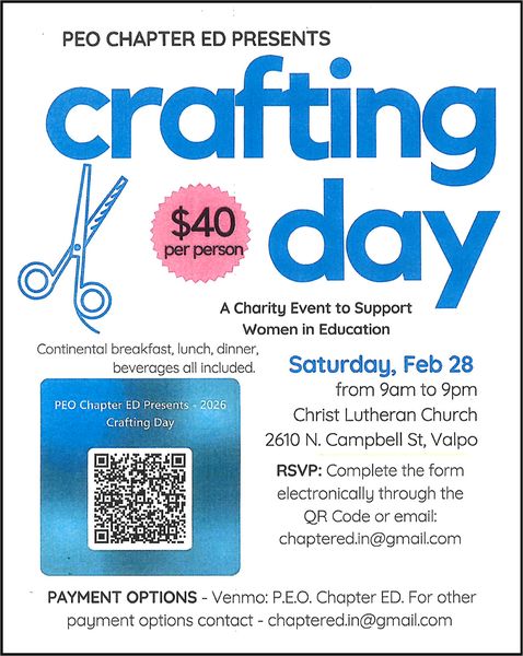 at the Porter County Expo Center on Tuesday, March 3 from 4-7pm. Would you be willing to provide a dessert? Please call the CLC office (219-462-6660) before February 24 if you have any questions. The desserts should be delivered to CLC on Monday, March 2 - please put in the kitchen with a label and the desserts should be pre-cut. Another way to help would be to deliver soups from the restaurants to the Expo Center on March 3rd. Contact Irene Adams (219-801-1585) if you have any questions. Thank you in advance!