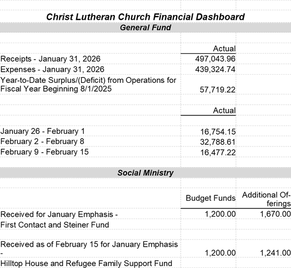 Lutheran had packed in 2025 700 Baby Care Kits. FABRIC KIT PROJECT 2026 GOAL-100 KITS COMPLETED-16 FEBRUARY NEEDS-Cotton fabric in 3 yard lengths. Also, 1 yard or more lengths of cotton fabric that can be used for receiving blankets. Gently used flannel flat sheets that are not torn or stained can also be used. Please indicate if they are washed. INTERESTING FACT-LWR 2025 total number for Fabric Kits dispersed was 9,368 to 4 countries. Most of these kits went to the United States. HURRICANES AND WILD FIRES here in the United States produced a tremendous need for LWR KITS. Christ Lutheran assembled 136 Fabric Kits in 2025. PERSONAL CARE KITS KITS COMPLETED 228 Thanks to all who have contributed so far. Don’t forget: Any contributions made during Lent will be matched dollar for dollar. Your help is greatly appreciated. ALUMINUM CAN PROJECT 2026 GOAL-$250 A HUGE THANK YOU for all the cans that have appeared in the Red truck and White basket. We are close to taking our first trip in 2026 to the recycling location. KEEP THOSE CANS COMING! INTERESTING FACT- Since 12/2023 (when this project started), Every CAN that had a tab on it was removed and given to Riley Children’s Hospital in Indianapolis. Riley continues to request tabs to support their mission of medically helping children. Lent is a season when traditionally Christians make a sacrifice of some type to remember Christ's sacrifice for us. In this spirit, I am making this request for this time during lent.